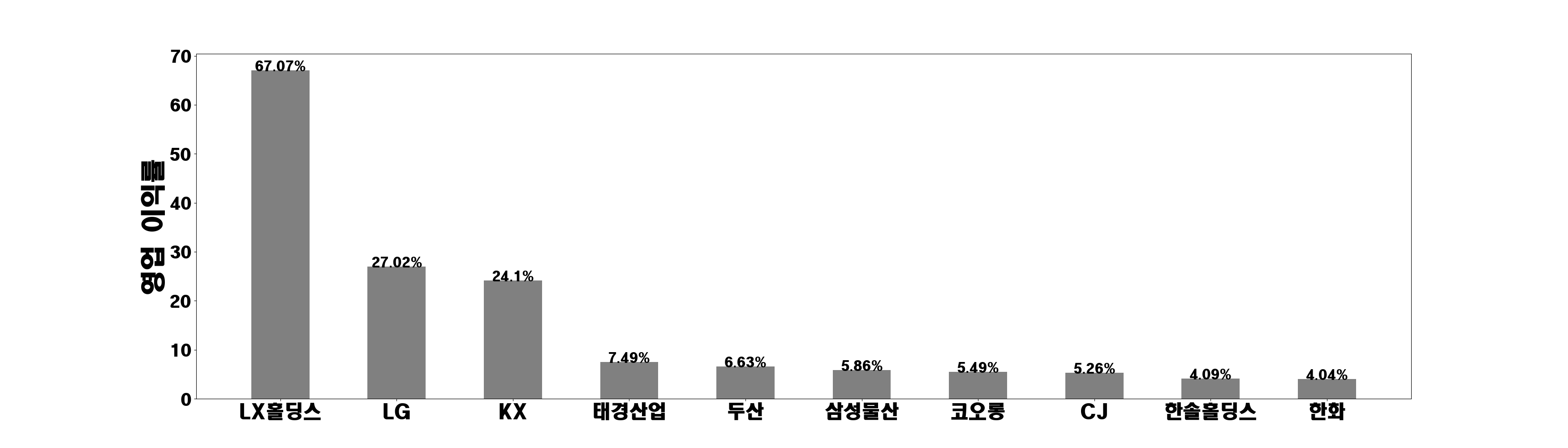 두산, 한화, CJ, SK네트웍스, 코오롱, LG, 한솔홀딩스, 효성, 롯데지주, 현대지에프홀, 태경산업, 삼성물산, LX홀딩스, 현대그린푸드, KX