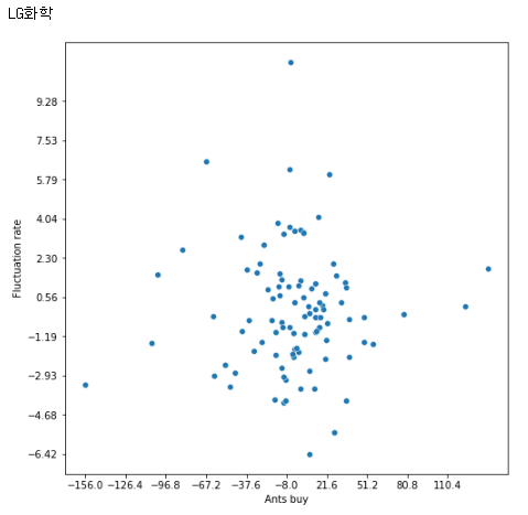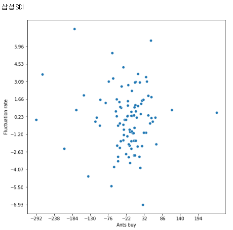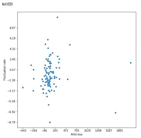 이전 글에 이어, 개인의 순매수량에 대한 다음날 주가의 상관관계를 그려보고자 한다.