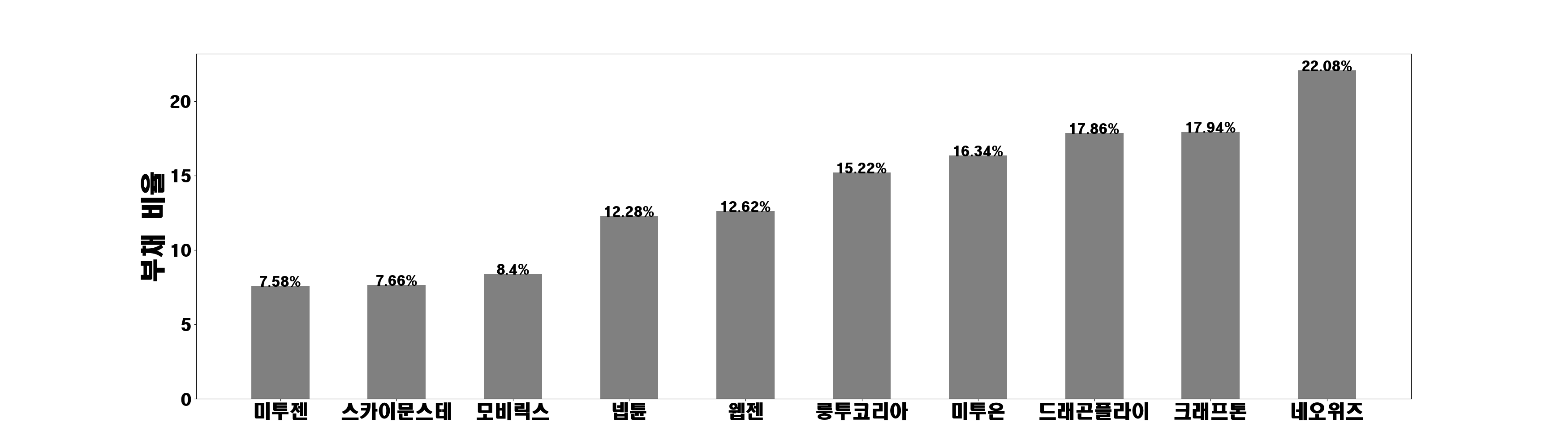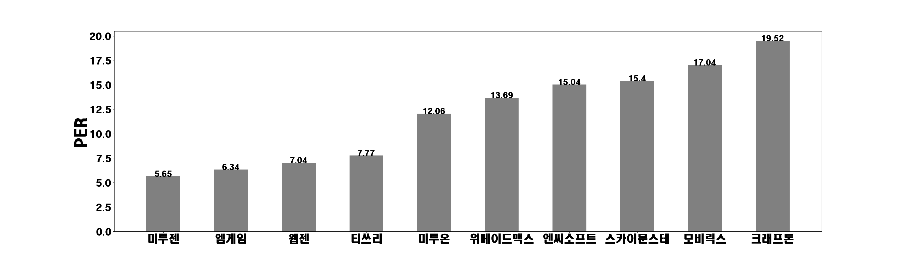 엔씨소프트, 더블유게임즈, 넷마블, 크래프톤, 플레이위드, 드래곤플라이, 스카이문스테, 네오위즈홀딩, 한빛소프트, 액토즈소프트, 엠게임, 룽투코리아, 컴투스홀딩스, 조이시티, 웹젠, 컴투스, 네오위즈, 위메이드맥스, 위메이드, 위메이드플레, 데브시스터즈, 미투온, 티쓰리, 액션스퀘어, 썸에이지, 넵튠, 넥슨게임즈, 펄어비스, 카카오게임즈, 베스파, 밸로프, 모비릭스, 미투젠